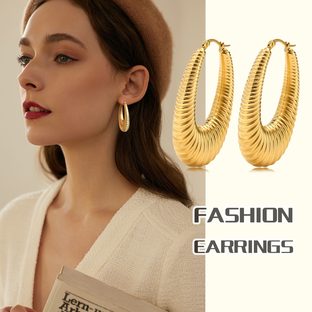 Brincos Vnox De Argola Oca Para Mulheres , Pendente De Aço Inoxidável 18K Hipoalergênico Leve