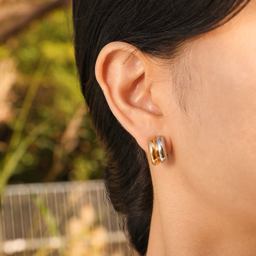 Brincos Vnox Dupla Camada De Ouro Prata Tom Em Forma De C Para Menina Feminina , 18K Aço Inoxidável Ins Fashion Drop Earring