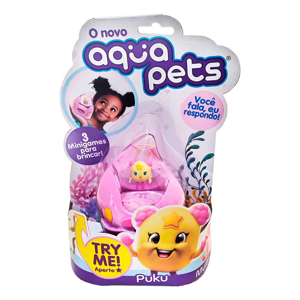 Aquapets – Seu Novo Pet Interativo Está Aqui! Conheça Muki! Conheça os AQUAPETS, os pets mais fofos, divertidos e cheios de personalidade que vivem dentro de um aquário virtual! Eles reagem aos seus toques, emitem sons, balançam o corpo e até “conversam” com você! Interação de Verdade! Cada Aquapet tem um comportamento único! Toque, fale, observe e descubra como ele responde com sons e movimentos divertidos. Colecione e Conecte! Com vários personagens diferentes para colecionar, você pode conectá-los entre si e ver os pets interagirem uns com os outros de forma hilária! Estimula a Imaginação e o Afeto Perfeito para crianças que amam bichinhos e tecnologia! Ajuda a desenvolver a criatividade, o cuidado e a curiosidade. Presente Perfeito! Ideal para dar de presente e encantar com uma experiência interativa diferente de tudo! Leve seu Aquapet para casa e tenha um pet diferente de tudo o que você já viu! Já disponível na melhor loja de brinquedos!
