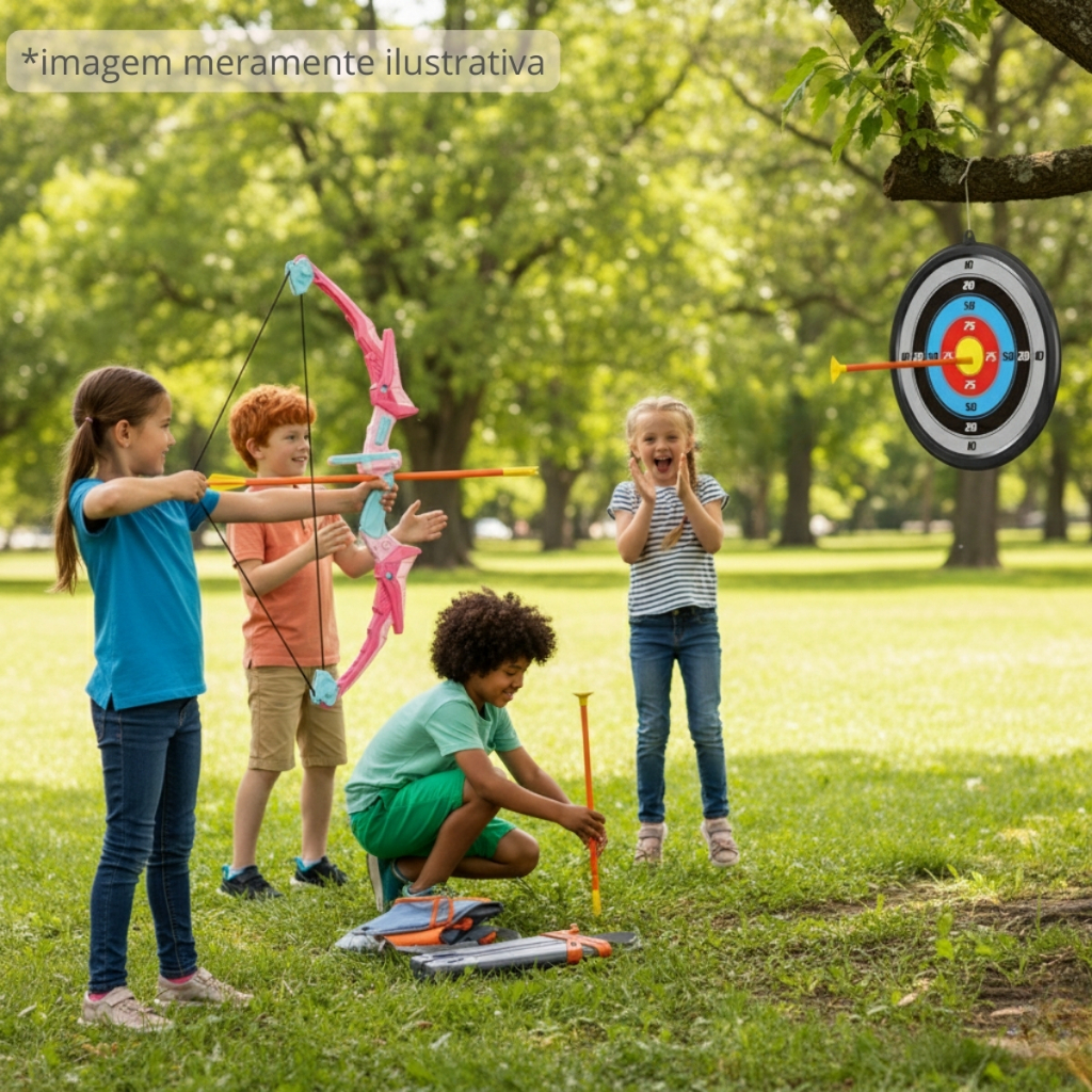 O Anúncio Contém: 01 Arco Infantil, 01 Alvo, 01 Aljava (porta-flechas),03 Flechas com ventosa. Perguntas Frequentes: As flechas são seguras? As flechas possuem ponta de ventosa, tornando a brincadeira mais segura para as crianças. Qual o material do produto? Fabricado em plástico resistente e livre de toxicidade, ideal e seguro para o uso infantil. O arco possui luzes? Sim, o arco possui pontos de luz que acendem, tornando a brincadeira mais emocionante. Indicado para qual faixa etária? Recomendado para crianças a partir de 5 anos. Kit Arco e Flecha Infantil – Aventura e Pontaria para os Pequenos! Este kit de arco e flecha da Brinqkids é o presente perfeito para incentivar o esporte, a coordenação visual-motora e a brincadeira ativa. O arco e a aljava são temáticos e coloridos, chamando a atenção dos pequenos aventureiros. As luzes adicionam um toque especial, elevando a experiência de "Super Arqueiro"! É fácil de manusear e montar, e o alvo com pontuação permite que as crianças se desafiem em competições divertidas de mira. Informações e Dimensões: -Arco: Aproximadamente 59cm de altura. -Flechas: Aproximadamente 41cm de comprimento. -Aljava: Aproximadamente 30cm de altura. -Alvo: Aproximadamente 20cm de diâmetro. -Idade recomendada: A partir dos 5 anos. -Marca: Brinqkids. -Produto novo e em estoque. -Todos os produtos têm seguro contra extravio. -Todas as informações são de responsabilidade do fabricante e/ou fornecedor. -As cores e detalhes do produto podem variar levemente conforme o lote. -Aviso Legal: A cópia total ou parcial desta descrição e/ou fotos é proibida e protegida pela Lei nº 9.610/98 de Direitos Autorais.
