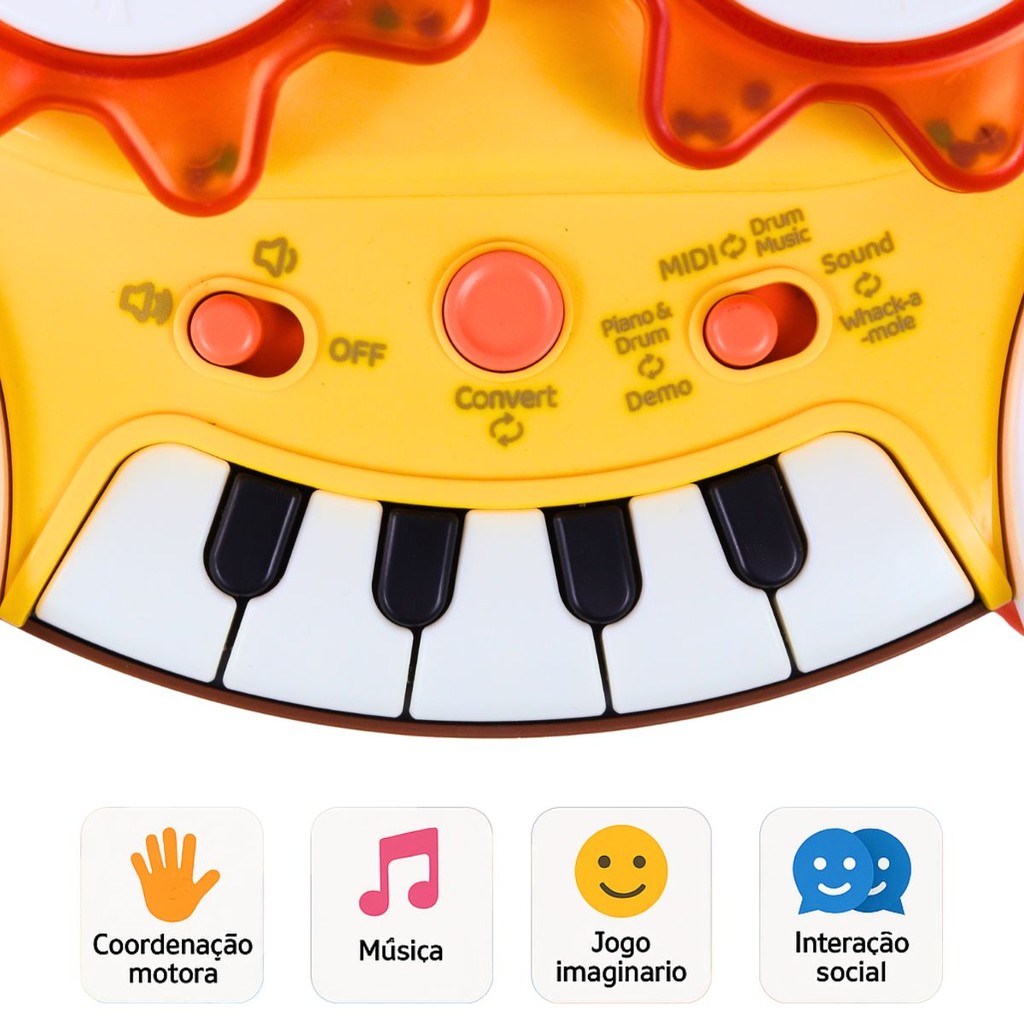 Brinquedo Bateria E Piano Com Som, Luz e Microfone - Castela