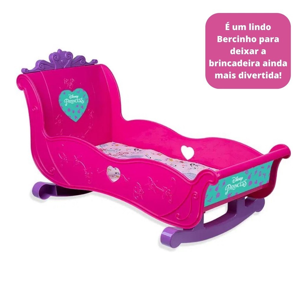 Brinquedo Bercinho para Bonecas Princesas Disney 36 cm Plástico Rosa sem Mecanismo - 2455
