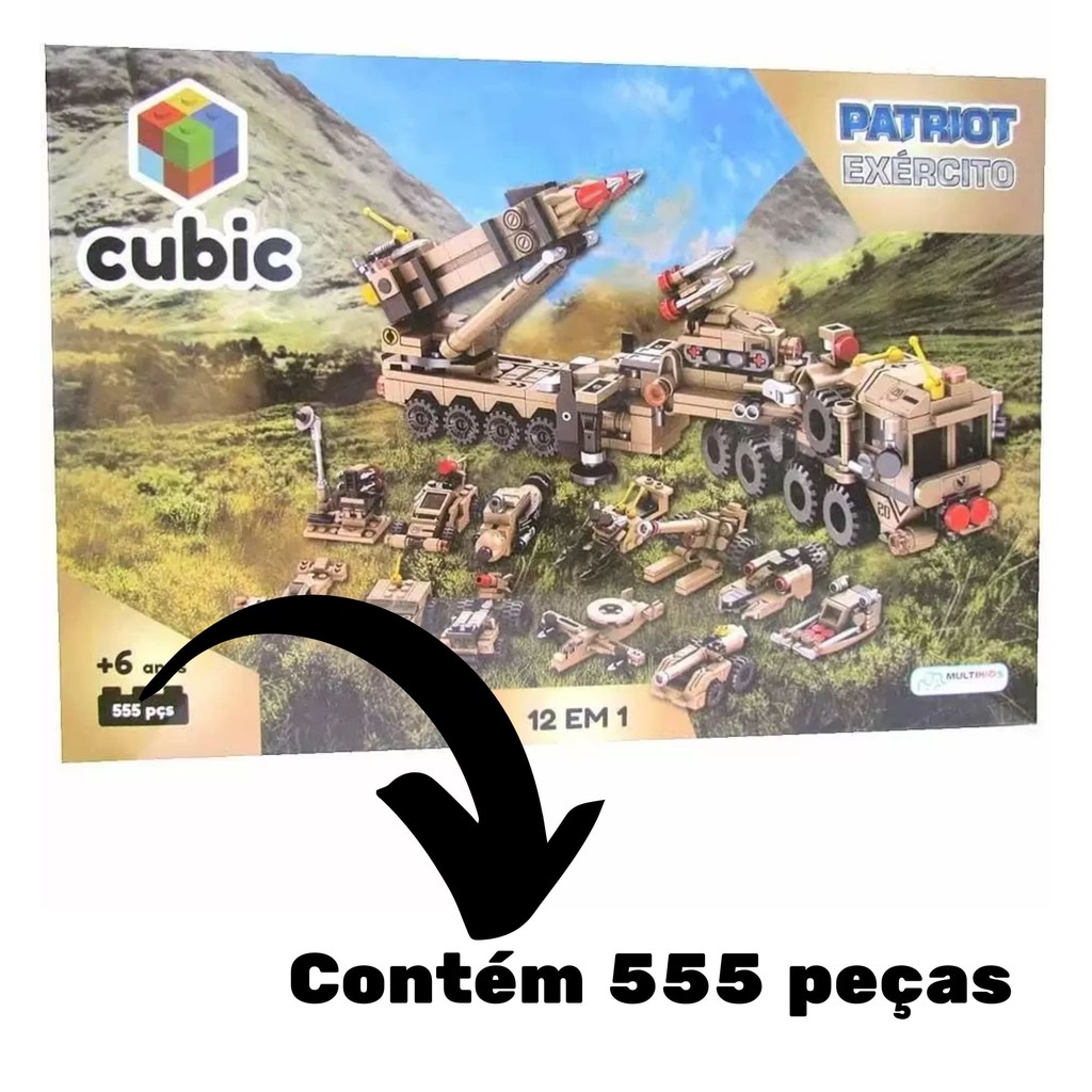 Brinquedo Blocos de Montar Cubic City 12 em 1 Patriot Exército 555 Peças Multikids - BR1096