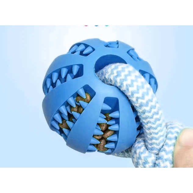 Brinquedo Bola com Ranhuras para Petisco e Corda – Enriquecimento Ambiental, Fácil de Limpar