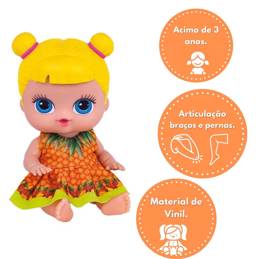 Brinquedo Boneca Frutinhas Abacaxi com Cheirinho de Frutas em Plástico Vinil Amarelo Cotiplas - 2509