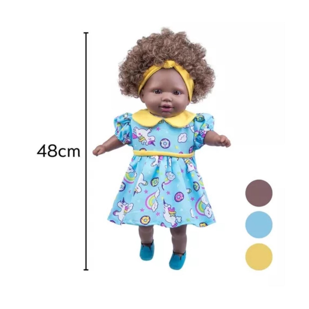 Brinquedo Boneca Tayla em Plástico Vinil com Cabelo Cacheado Castanho com Cheirinho de Bebe 48cm Cotiplas - 2281