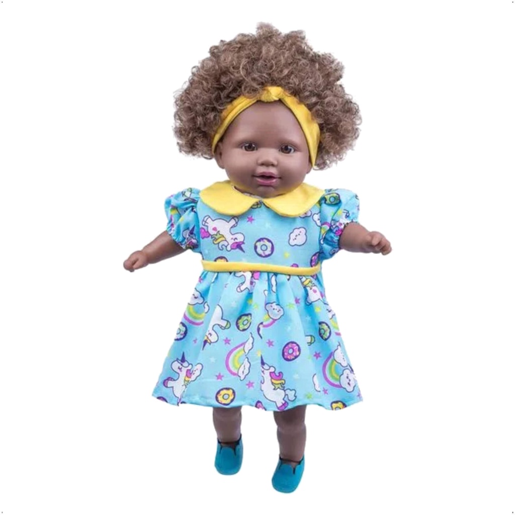 Brinquedo Boneca Tayla Negra em Plástico Vinil com Cabelo Cacheado Castanho ou Preto Sortido 48cm Cotiplas - 2281