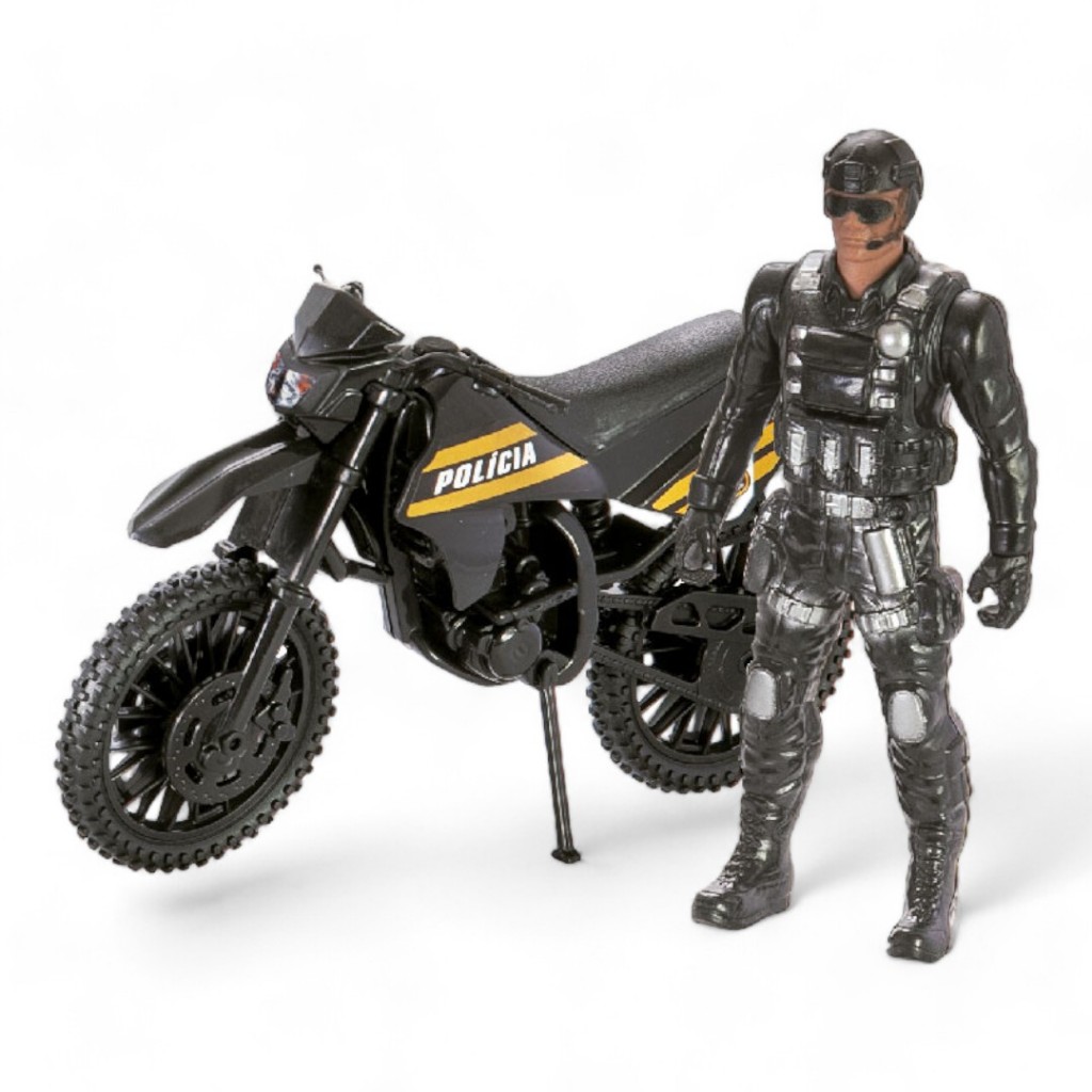 Brinquedo Boneco Policial Tático Comando Especial + Moto Na Caixa Presente - Bs Toys
