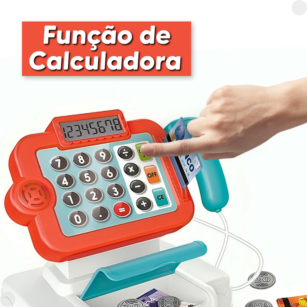 DESCRIÇÃO DO PRODUTO: O brinquedo Caixa Registradora Hora das Compras é super legal. Tem função calculadora, a gaveta abre e fecha, simula leitor de código de barras e tem vários acessórios. Para a brincadeira de fazer compras no mercado ser ainda mais completa e divertida! CARACTERÍSTICAS TÉCNICAS: Conteúdo da Embalagem: 01 Caixa Registradora / Acessórios Diversos. Dimensões Aproximadas do Produto: 26cm x 22cm x 16cm (Altura x Largura x Comprimento/Profundidade) Dimensões Aproximadas da Embalagem: 26cm x 22cm x 16cm (Altura x Largura x Comprimento/Profundidade) Material/Composição: Plástico. Idade Mínima Recomendada: A partir de 6 anos. Participantes: A partir de 1 pessoa Alimentação: Não se aplica Marca: DM Toys. Referência: DMT6824A - VERMELHO / DMT6824B - AZUL Outras informações: As cores podem variar entre as imagens mostradas acima e o produto. Imagens meramente ilustrativas. Aviso: As informações e imagens divulgadas são de total responsabilidade do fabricante/fornecedor. Produto lacrado e disponível a pronta entrega para todo Brasil! APROVADO PELO INMETRO