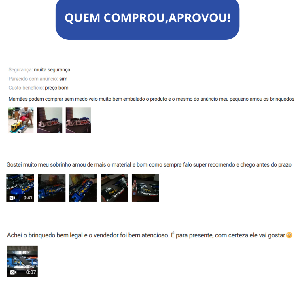 DESCRIÇÃO DO PRODUTO: A Cegonheira Roma Petroleum é um caminhão para o transporte de outros veículos, possui um sistema na rampa superior que desce para carregar e descarregar, acompanha 4 Pick-Ups em cores sortidas com calotas metalizadas. Um ótimo brinquedo para estimular a imaginação das crianças em situações repletas de possibilidades! A linha Petroleum está incrível, são 4 modelos diferentes: Cegonheira, Caçamba, Baú e Tanque (vendidos separadamente). Colecione! Tamanho aproximado Cegonheira: 32cm comprimento, 6,5cm largura e 11cm altura. Tamanho aproximado Pick-Ups: 12cm comprimento, 4,5cm largura e 3,5cm altura. ESPECIFICAÇÕES: Código de Barras: 7896965214704 Idade Recomendada: A partir de 03 anos ATENÇÃO: NÃO INDICADO PARA MENORES DE 3 ANOS POR CONTER PARTES PEQUENAS QUE PODEM SER ENGOLIDAS. Material/Composição: Plástico Conteúdo da Embalagem: 01 Caminhão Cegonheira + 04 Carrinho Pick-Up Medida Aproximada da Embalagem (A, L, C): 16,5x9x38cm Garantia: 01 meses Selo de Segurança do Inmetro: CE-BRI/IQB 000280 NM 300/2002 - OCP 0066 Certificação: Certificado pelos Órgãos Autorizados - OCP´S (Organismos de Certificação de Produtos) Fabricante: Roma Brinquedos Aviso Importante: Todas as informações divulgadas são de responsabilidade exclusiva do fabricante/fornecedor. As cores dos produtos podem variar entre as imagens mostradas acima ou fotos da embalagem. Imagens meramente ilustrativas.