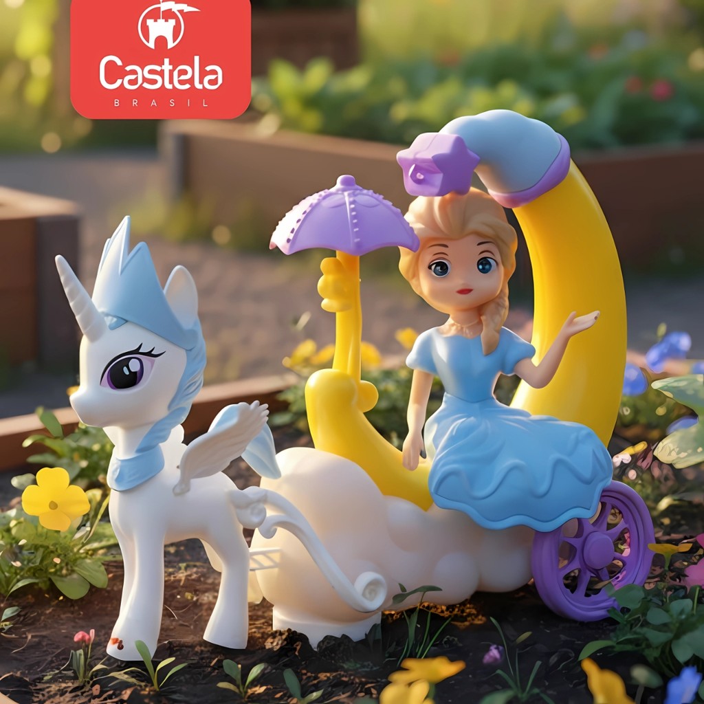 Brinquedo Carruagem de Unicórnio Princesa Azul Luz e Som Castela