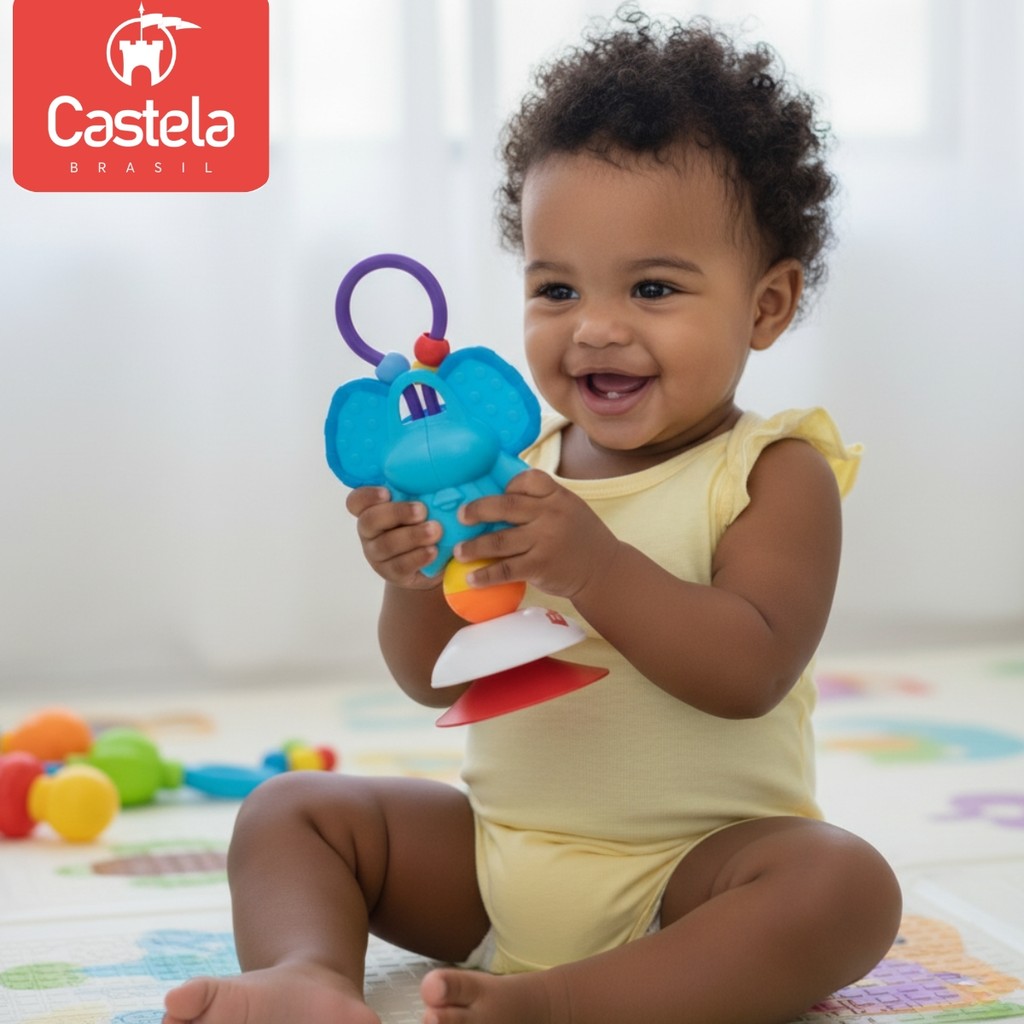 Brinquedo Chocalho Elefantinho Infantil Com Ventosa para Bebês - Castela