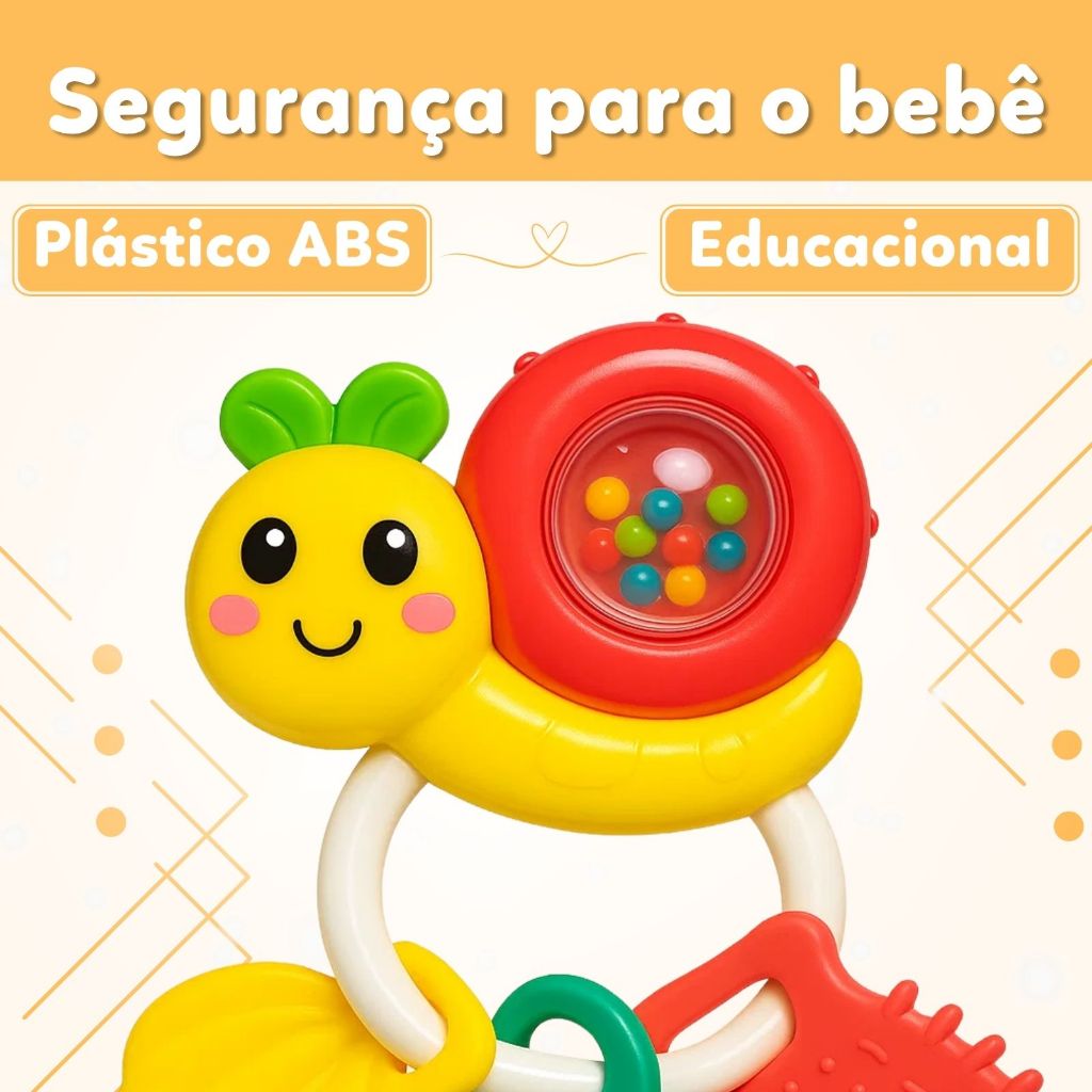 CHOCALHO PARA BEBÊS MUSICAL SOM E LUZ - ATENTU Transforme os momentos do seu bebê em pura diversão e aprendizado! O Chocalho Sensorial foi desenvolvido para estimular os sentidos dos pequenos, promovendo o desenvolvimento visual, cognitivo e motor de forma lúdica e interativa. Com sons encantadores, texturas variadas e um design seguro e colorido, ele se torna o brinquedo ideal para bebês a partir de 3 meses. CONTEÚDO DA EMBALAGEM: - Chocalho Bichinho; ESPECIFICAÇÕES: - Chocalho com som; - Livre de BPA; - Argolas/Penduricalhos sensoriais com diferentes texturas; - Design atraente; - Feito de plástico; - Necessário 2 pilhas AA; - Certificação INMETRO: 007307/2024; - Marca: ATENTU. DIMENSÕES POR MODELO: DIMENSÕES DO CHOCALHO - LEÃO - (AxL): 16x7 DIMENSÕES DO CHOCALHO - SAPINHO - (AxL): 14x8 DIMENSÕES DO CHOCALHO - VAQUINHA - (AxL): 15x7 DIMENSÕES DO CHOCALHO - ELEFANTE - (AxL): 14x9 DIMENSÕES DO CHOCALHO - GOLFINHO - (AxL): 17x11 DIMENSÕES DO CHOCALHO - CARACOL - (AxL): 15x9 IMPORTANTE: Garantia: 3 Meses a partir da data de recebimento - para defeitos de fabricação (não cobrimos mau uso). Todos os Direitos Reservados Em caso de cópia dessa descrição e fotos, os responsáveis serão cobrados de acordo com a Lei (9.610/98) de Direitos Autorais.