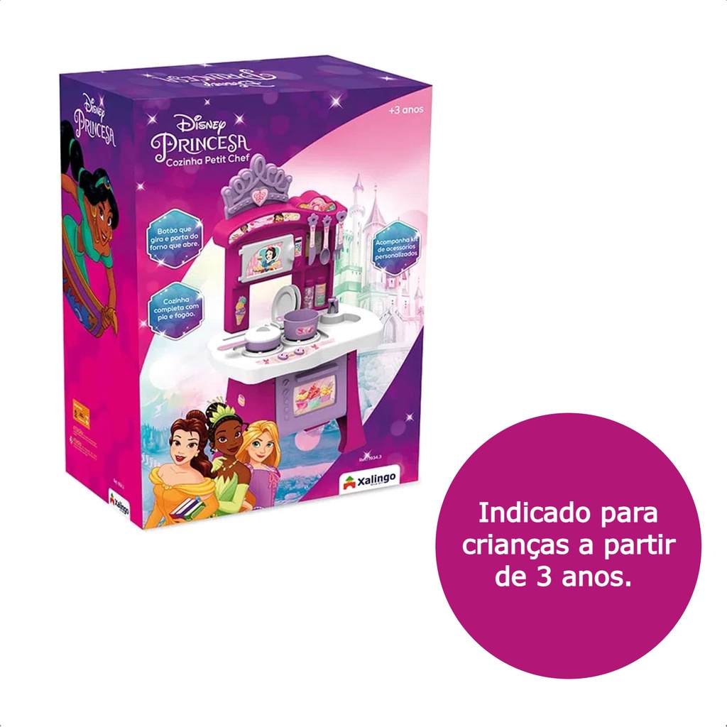 Brinquedo Cozinha Infantil Petit Chef Princesas Acessórios e Forninho Faz de Conta +7 Anos Xalingo