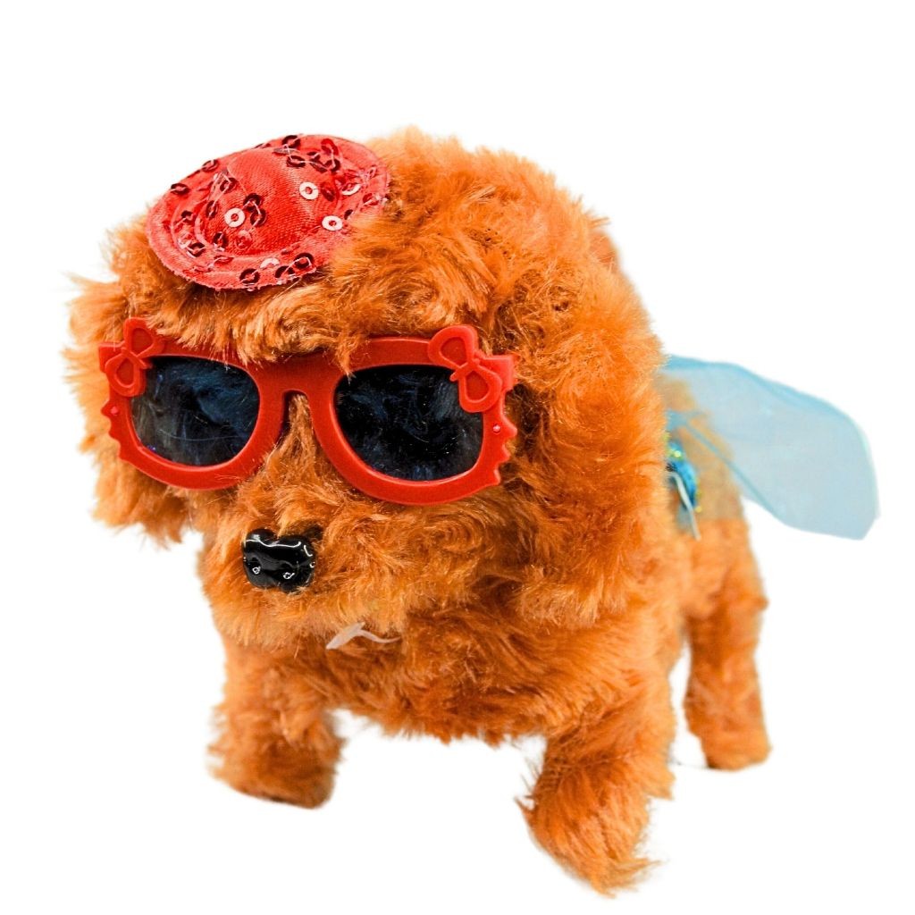 Brinquedo De Cachorrinho - Cachorro Pelúcia com Som e Movimento Anda a Pilha com Óculos e Acessório