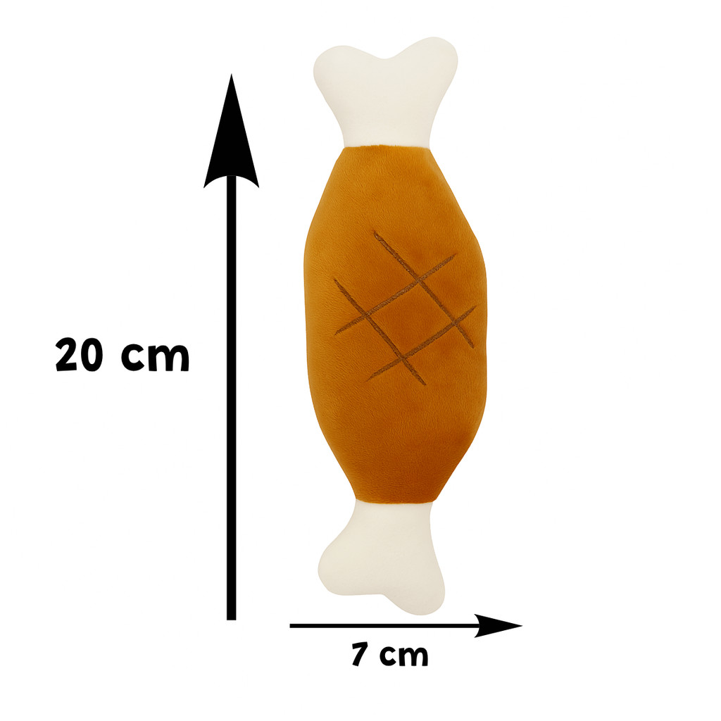 Carne com Osso de Pelúcia Seu melhor amigo merece o melhor! Nosso brinquedo de pelúcia para cachorro é super macio, resistente e perfeito para brincar e aconchegar. Feito com materiais seguros, ajuda a aliviar o tédio e fortalecer o vínculo com seu pet. Leve diversão e conforto para o seu cão com um brinquedo que é durável e fácil de lavar. Ideal para cães, garante horas de entretenimento e carinho. DADOS TÉCNICOS: Material: Pelúcia com enchimento Pet: Cachorro (Porte Pequeno e Médio) Tamanho: 20x7cm Com Apito (Barulho/Som) Detalhes Bordados Costura Reforçada
