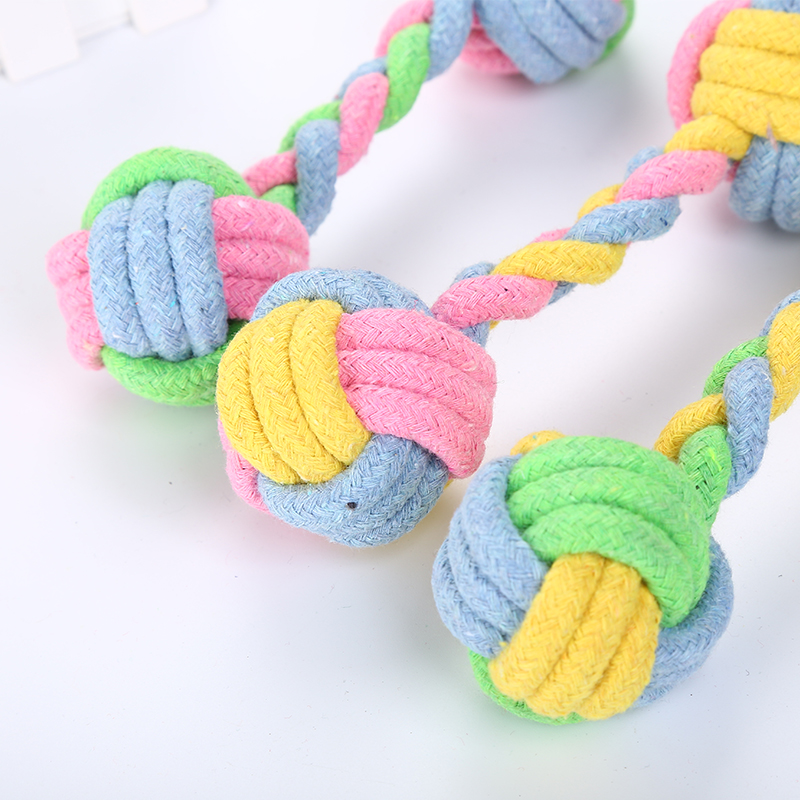Brinquedo de Corda de Algodão para Cães Cor Barbell Tecido à Mão Molar Resistente à Mordida Pet Suprimentos