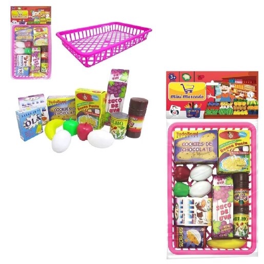 Brinquedo educativo e divertido, através de uma brincadeira saudável ensina as crianças como fazer compras de alimentos. Kit mercado com 13 itens composto por: 01 cestinha de compras, 03 frutas e 02 ovos, 01 caixa de leite, 01 caixa de sucrilhos, 01 lata de milho, 01 caixa de suco de uva, 01 pote de achocolatado, 01 caixa de cookies e 01 caixa de macarrão. Este brinquedo é uma ótima ferramenta para o desenvolvimento da criatividade e interação sócia, as crianças adoram, a diversão está garantida! Esse brinquedo estimula criação de listas de compras, e até mesmo aprender a vender, negociar, apresentar os produtos, arrumar a exposição deles para que outra criança queira compra-los, todas essas situações de aprendizado favorecem e desenvolvem de forma lúdica e possibilidade de escolha Especificações: - Recomendado à partir de 03 anos - Dimensões da Embalagem (CLA): 31,5 x 15,5 x 4 cm - Marca: Pica Pau Brinquedos - Referência: 354 - Certificado de Segurança: INMETRO
