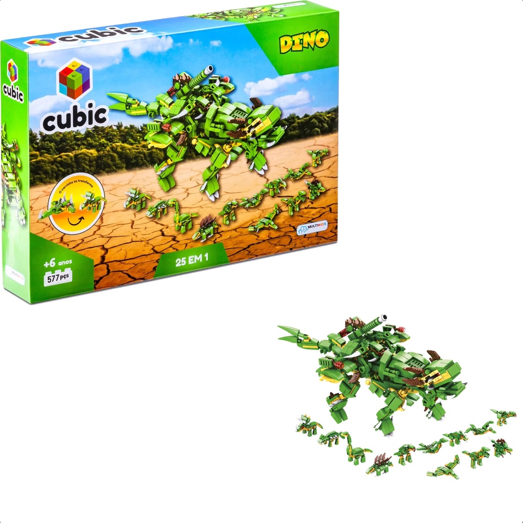 Brinquedo De Montar Cubic 25 Em 1 Dino 577 Peças Mega Dinossauro Acima De 6 Anos Multikids - BR1615