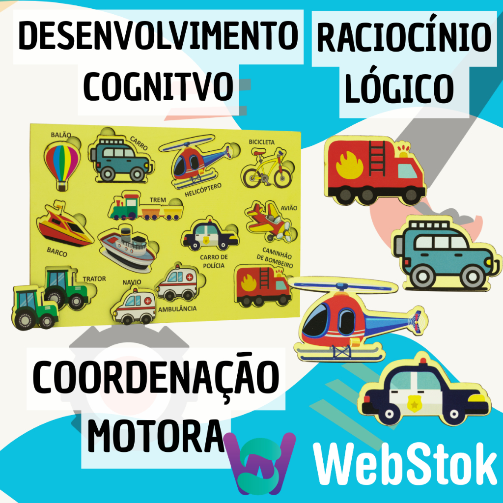 Brinquedo Didático Coordenação Motora Quebra Cabeça Encaixe Veículos Divertidos 12pçs Autismo