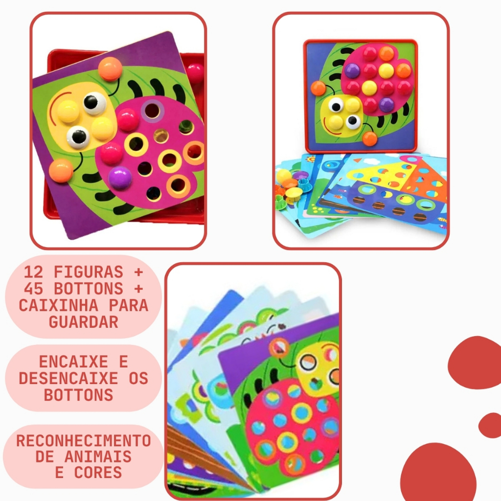 Brinquedo Educativo Encaixe Com Botões Coloridos Jogo De Montar Figuras Criativas Lúdico Infantil