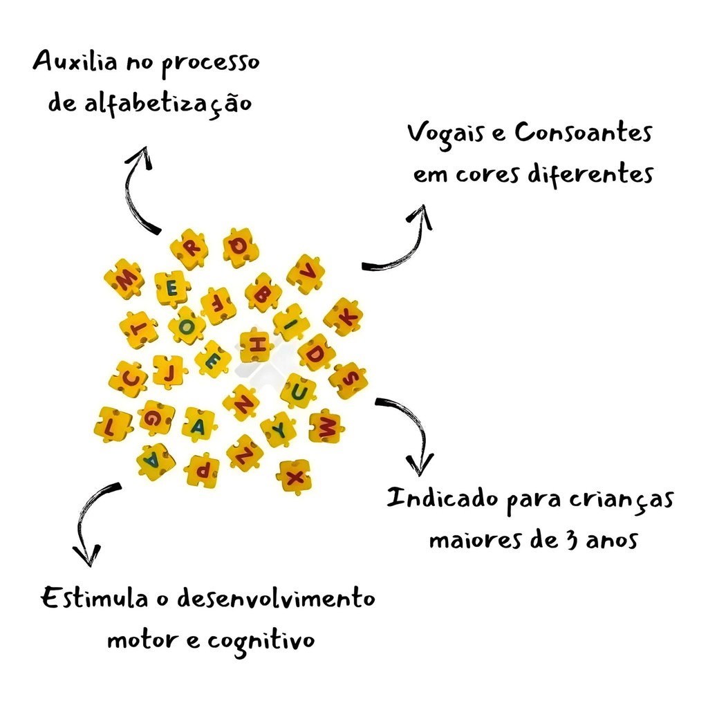 Aprenda brincando com o Kit Alfabeto 28 Peças! Perfeito para crianças acima de 4 anos, o conjunto permite formar palavras, reconhecendo letras e cores de forma divertida. Cada peça é colorida em amarelo, azul e vermelho, atraindo a atenção das crianças e tornando o aprendizado mais estimulante. Ideal para atividades educativas, jogos em família ou como presente que combina diversão e desenvolvimento cognitivo. Especificações Idade recomendada: Acima de 4 anos Número de peças: 28 Material: Plástico resistente Cores: Amarelo, azul e vermelho Objetivo: Formar palavras, estimular coordenação motora e aprendizado do alfabeto Destaques do Produto Conjunto educativo e divertido Estimula alfabetização e reconhecimento de letras Desenvolve coordenação motora e habilidades cognitivas Ideal para brincadeiras individuais ou em grupo Peças resistentes e seguras para crianças Características: - Marca:ELKA - Modelo:840 *Imagens Meramente Ilustrativas* Conteúdo da Embalagem: - 01x Kit Letras Alfabeto 28 Peças