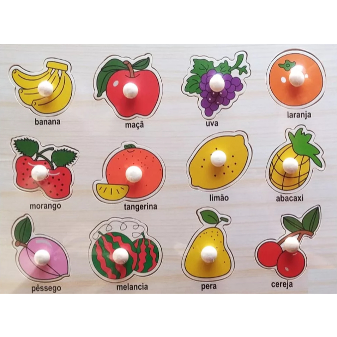 Brinquedo Encaixe Frutas Transporte Animais Madeira Quebra Cabeça Educativo Pedagógico Com Pinos MDF