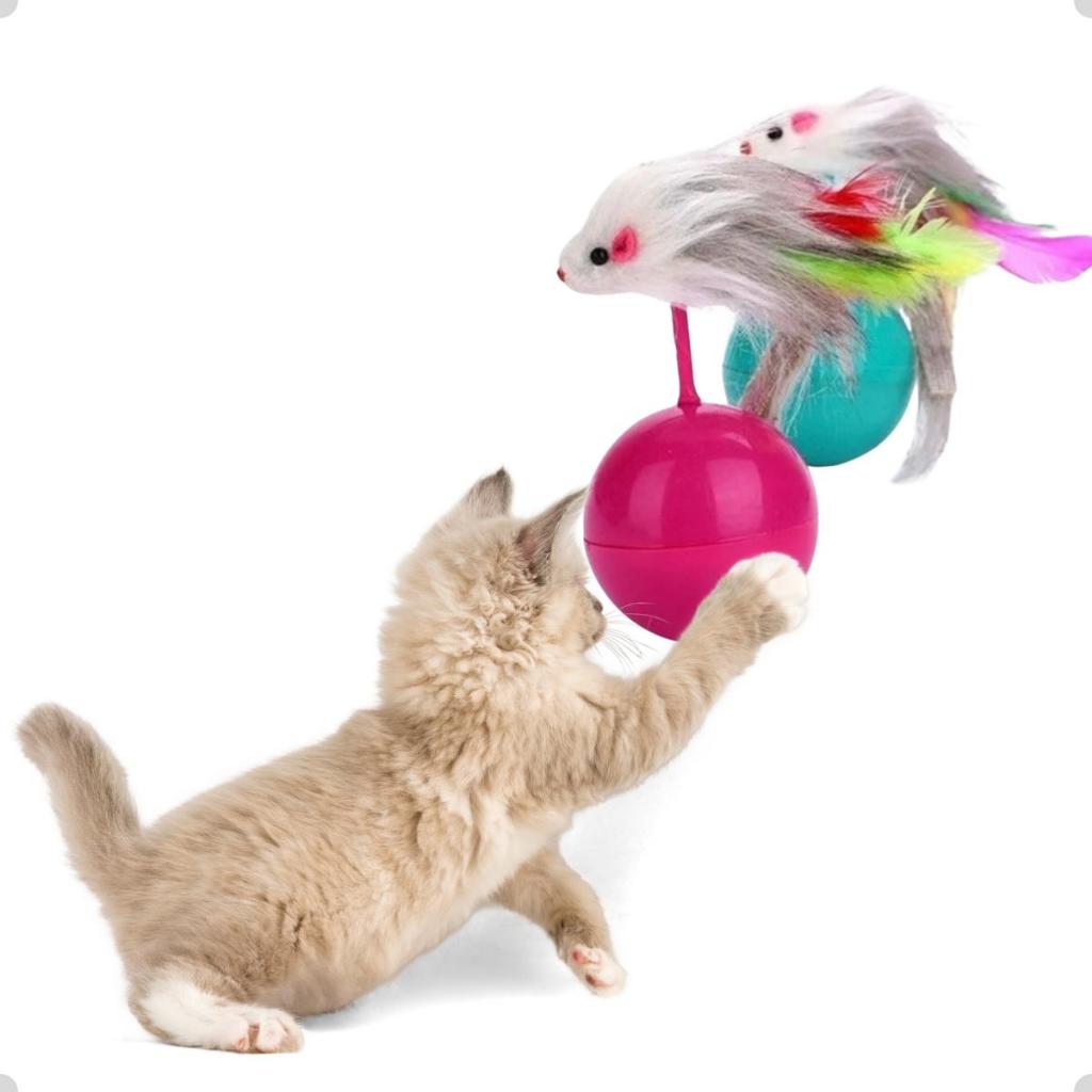 Brinquedo Gato Pet João Bobo Com Ratinho Colorido Pena