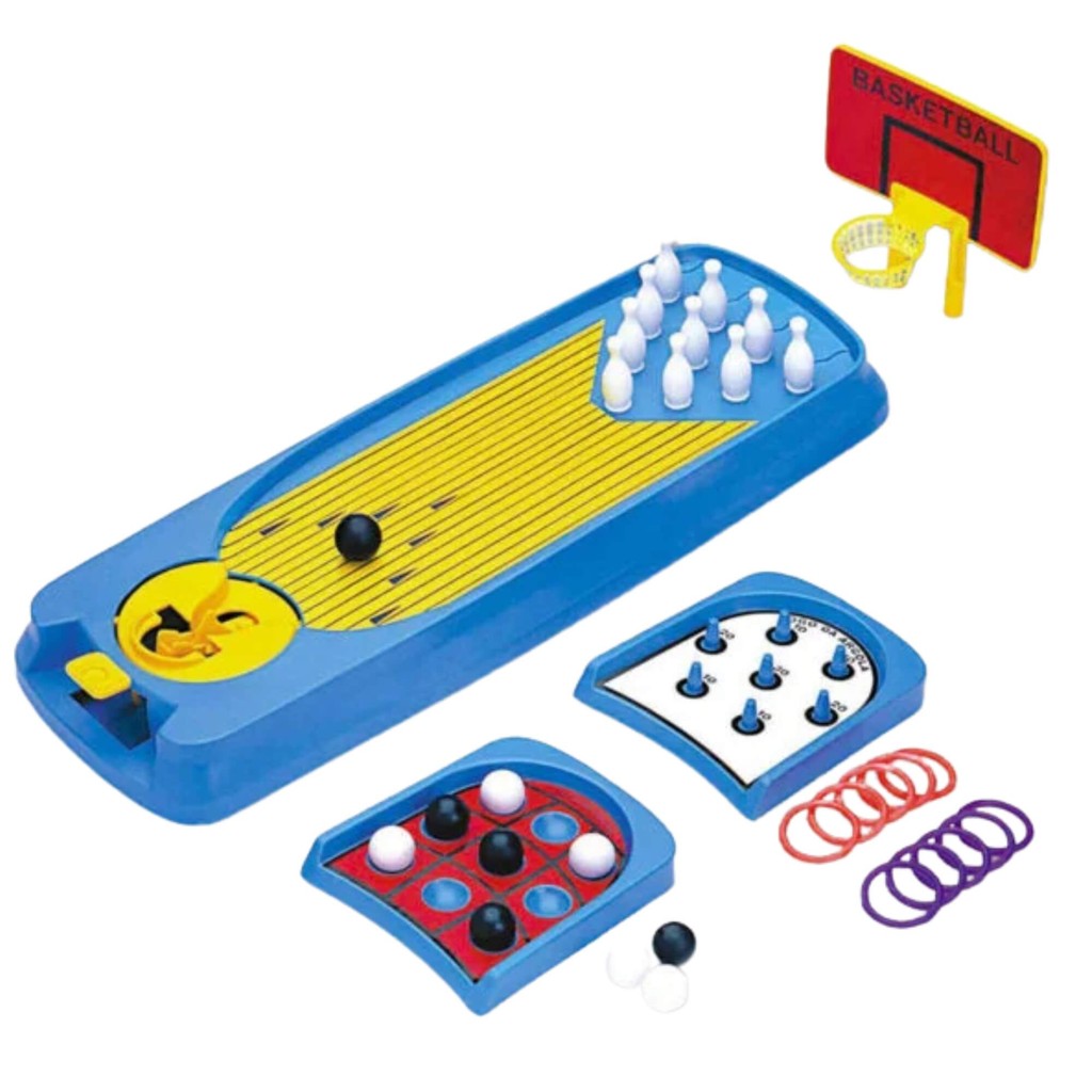 Brinquedo Infantil 4 em 1 Game Mesa de Jogos Argola Basquete Boliche Braskit - 210A