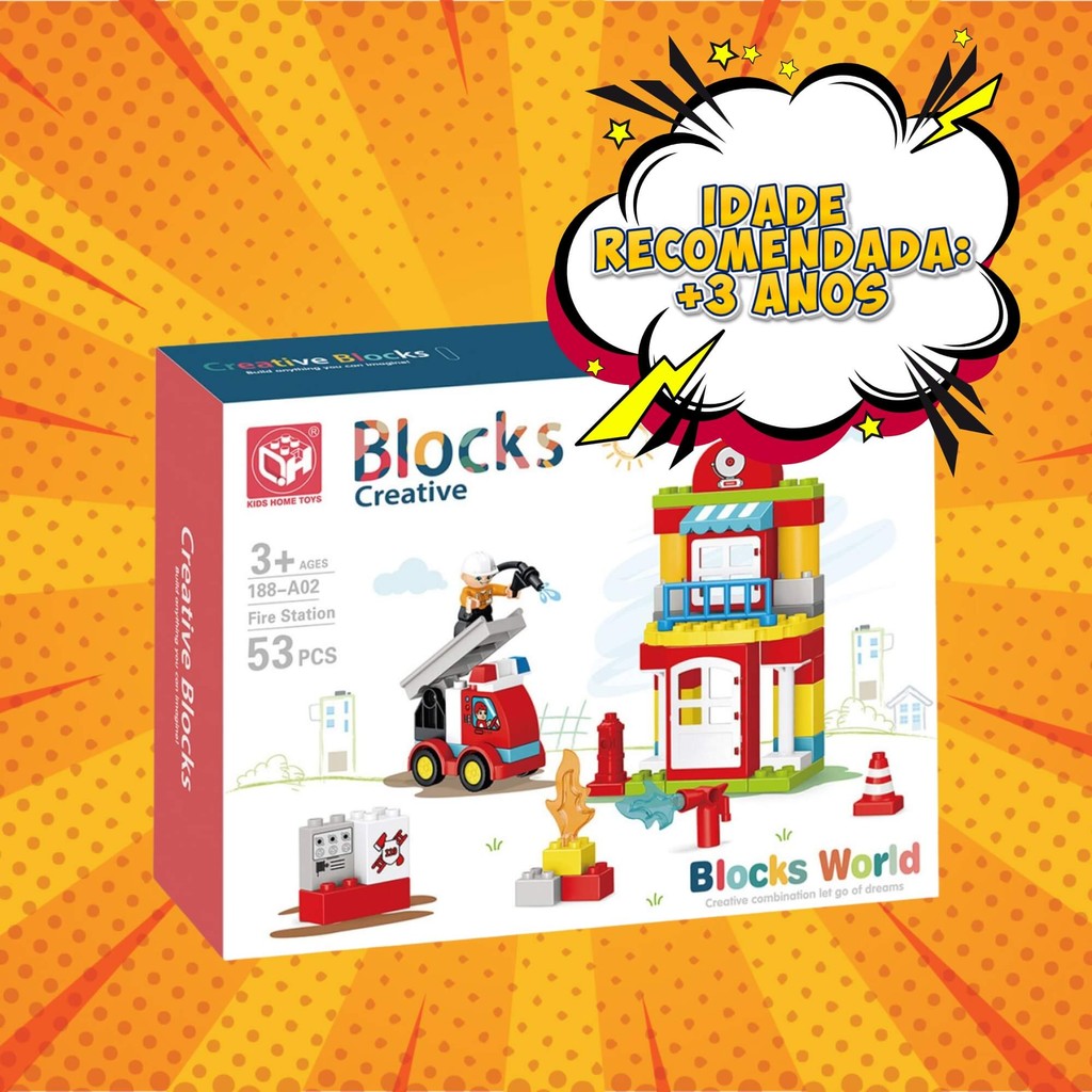 Brinquedo Infantil Blocos de Montar Cubic Jr Estação de Bombeiro 53 Peças Multikids - BR2251