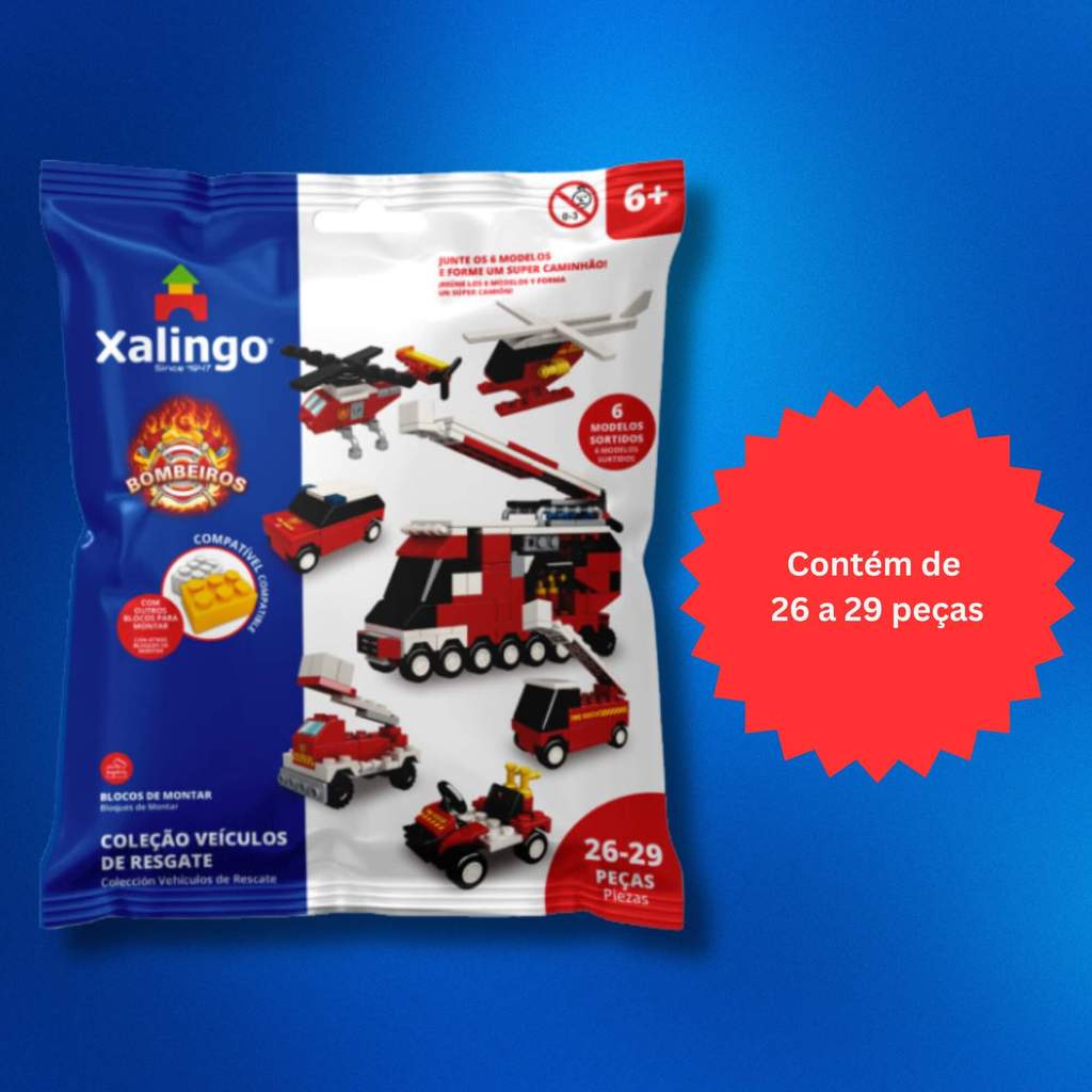 A diversão está garantida com a coleção Resgate Bombeiros da Xalingo! Cada embalagem contém 1 unidade aleatória da linha, tornando o produto ainda mais emocionante e colecionável, indicado para crianças acima de 6 anos. Contém de 26 a 29 peças, ideais para montar diferentes veículos e estimular a imaginação das crianças. Além disso, os blocos são compatíveis com outros modelos disponíveis no mercado, permitindo ampliar as possibilidades de criação e encaixe com diversos brinquedos. Produto colecionável, perfeito para incentivar a criatividade, coordenação motora e garantir momentos de aprendizado e diversão. Dimensões Aproximadas (AxLxC): 1,5x16x12 Idade Recomendada: A partir de 6 anos Quantidade de peças: 29 Peso do produto: 0,410 Características: - Marca:Xalingo - Modelo:14976 *Imagens Meramente Ilustrativas* Conteúdo da Embalagem: - 01x Bloco de Montar Resgate Bombeiros 26/29 Peças Unidade Xalingo
