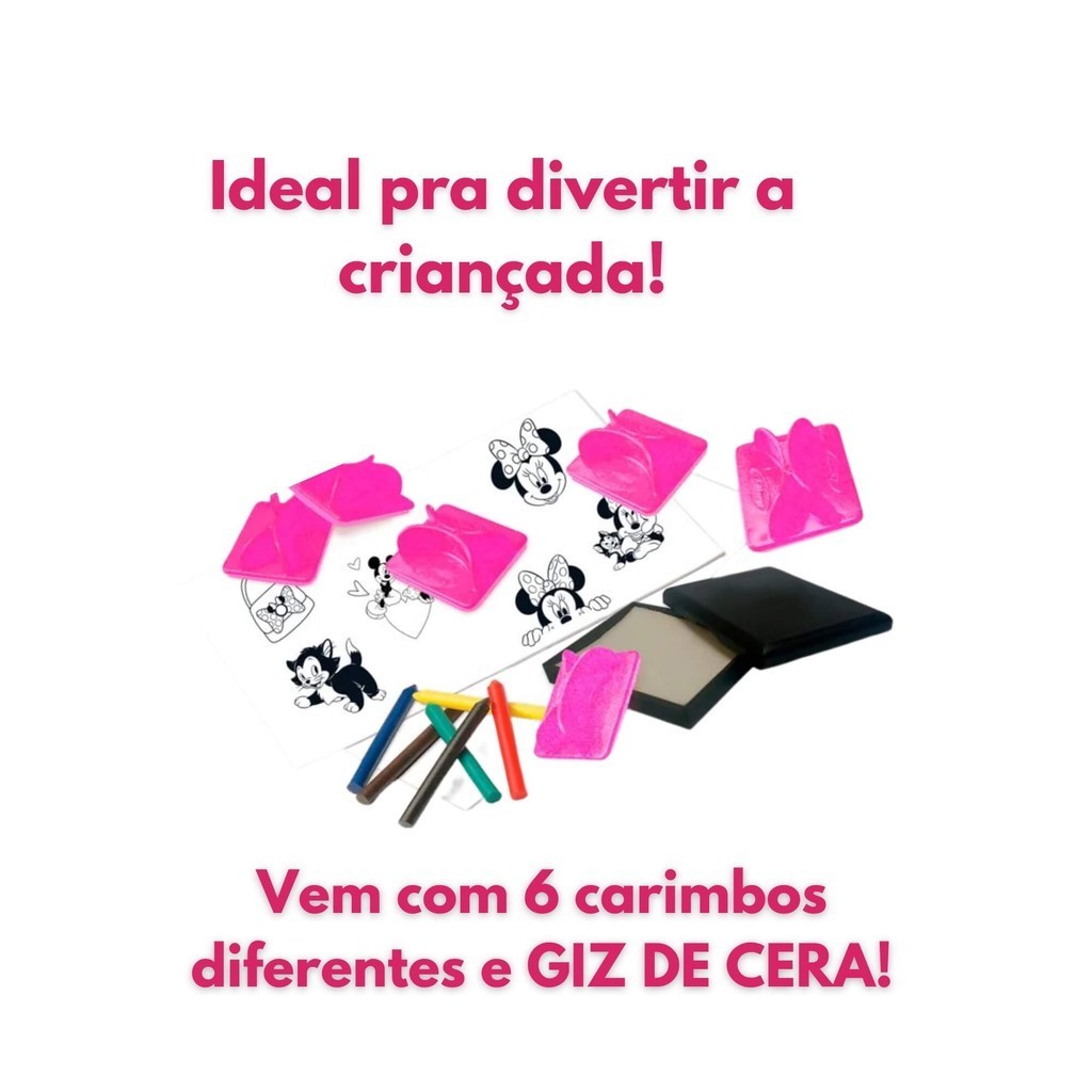 Brinquedo Infantil Carimbos Minnie A partir de 4 anos Com Giz de Cera e Almofada Xalingo 13254