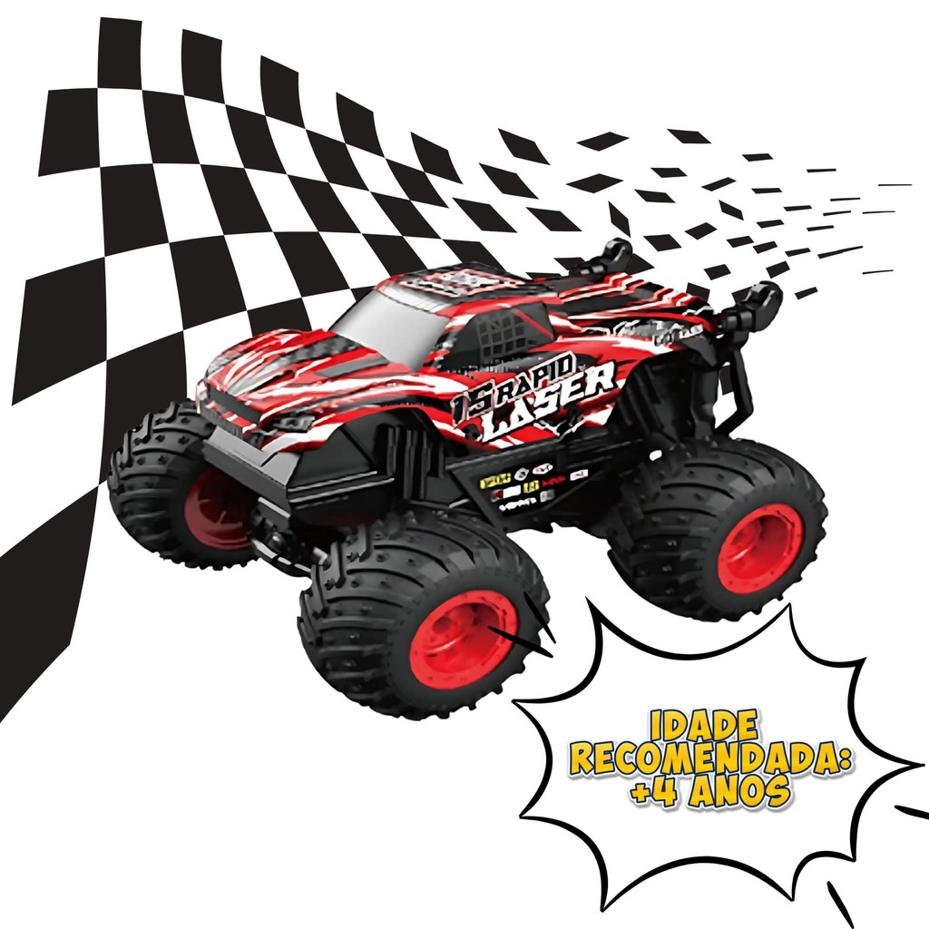 Brinquedo Infantil Carrinho LED 7 Spin Monster Vermelho com Controle Remoto Zippy Toys - 9156