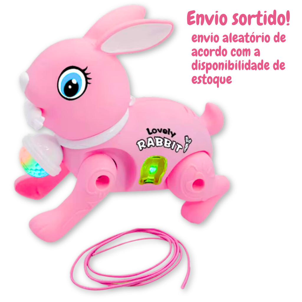 Brinquedo Infantil Coelho Musical Anda Sozinho Com Luz E Som