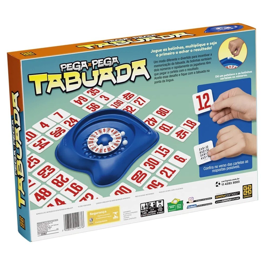 Brinquedo Infantil Jogo de Tabuleiro Pega Pega Tabuada Grow - 01467