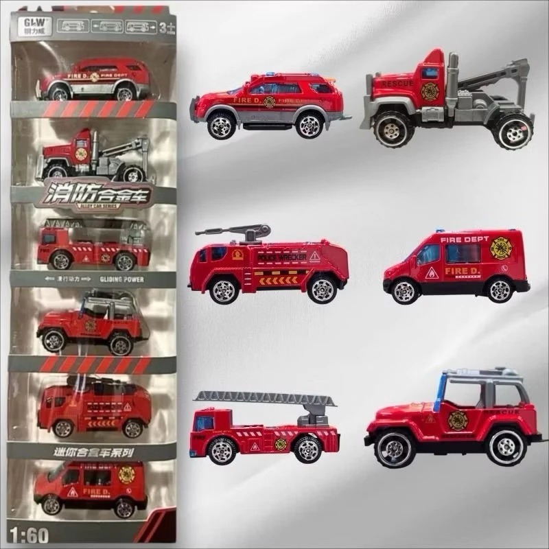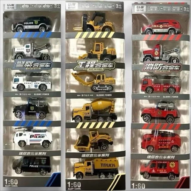 Brinquedo Infantil Kit Carrinhos Miniaturas Metal Polícia Bombeiros Construção Escala 1:60