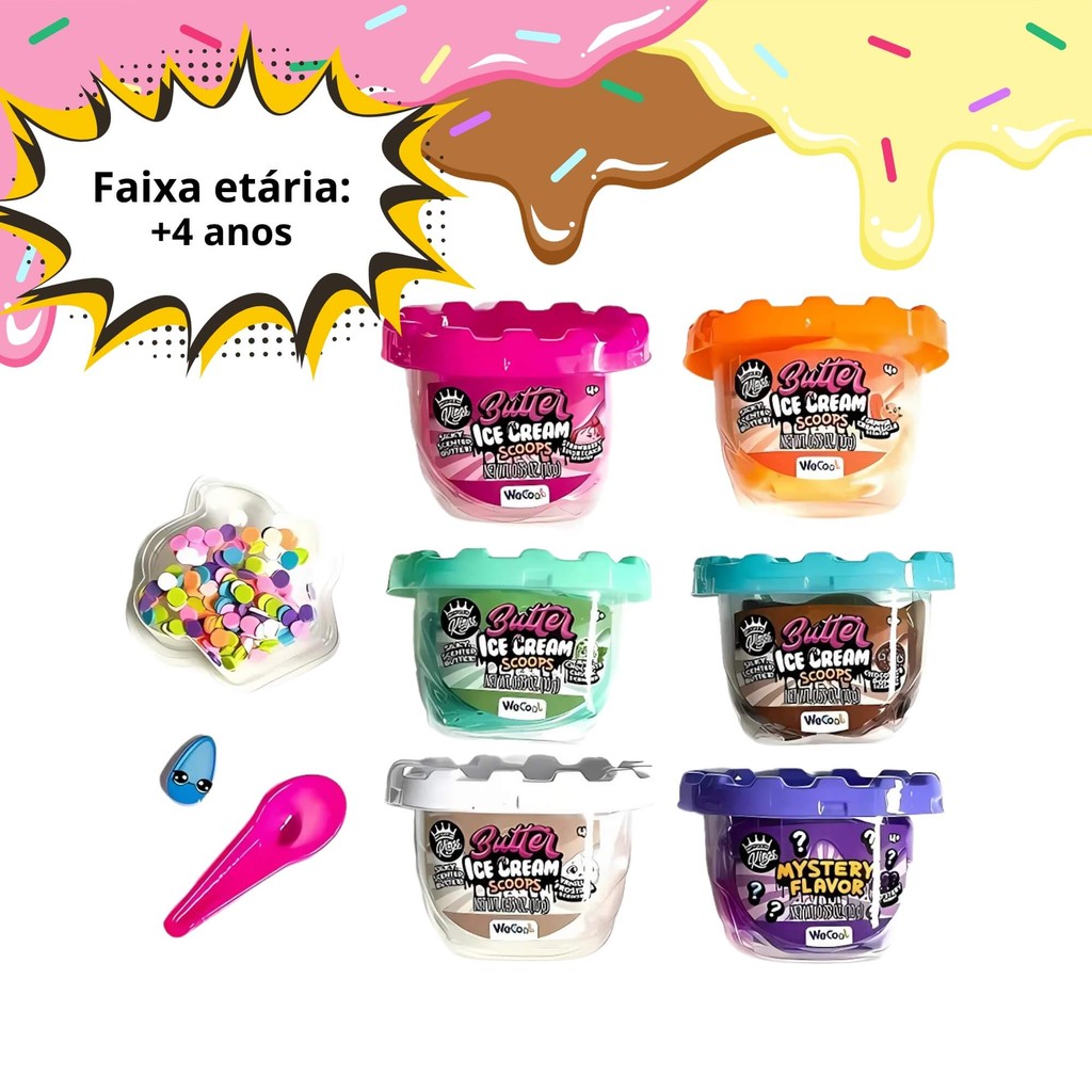 Uma massinha como você nunca viu antes! Conheca Compound Kingz, uma massinha extremamente macia e cheirosa, que não é pegajosa e grudenta! O Compound Kings Ice Cream Scoops inclui 6 diferentes massinhas, acessórios e uma mini colher! As massinhas tem cheirinho de laranja, bolo de morango, chocolate com menta, chocolate, baunilha e uma com fragrância misteriosa! As massinhas podem ser armazenadas em seus adoráveis recipientes em miniatura! Com esse kit, é possível montar sua própria sorveteria de massinha com o composto moldável e macio, perfeito para brincar de esticar, amassar e criar formas infinitas. Toque, estique, puxe e molde a massinha como quiser! O slime terapêutico não é pegajoso e é fácil de limpar. Seguro e não tóxico: Testado biológicamente e aprovado pelo Inmetro, 100% seguro, fórmula não tóxica e não agressiva. Caracteristicas - Largura do produto: 28cm - Altura do produto: 5.05cm - Peso do produto: 290g - Faixa etária: +4 anos - Comprimento do produto: 27.5cm - Composição do Material: Plástico, Massinha - Inmetro: 009618/2024 - Desenvolvimento: Físico/Cognitivo/Motor Características: - Marca:MULTIKIDS - Modelo:BR2155 *Imagens Meramente Ilustrativas* Conteúdo da Embalagem: - 6 diferentes massinhas - Acessórios e uma mini colher kit massinhas - massinha de modelar - multikids - massinha moldável