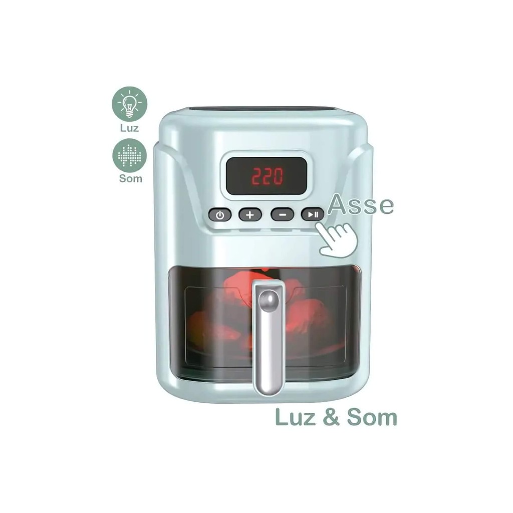 Brinquedo Infantil Mini Cozinha Airfryer c/ Luz, Som e Alimentos que Mudam de Cor Fenix Faz de Conta