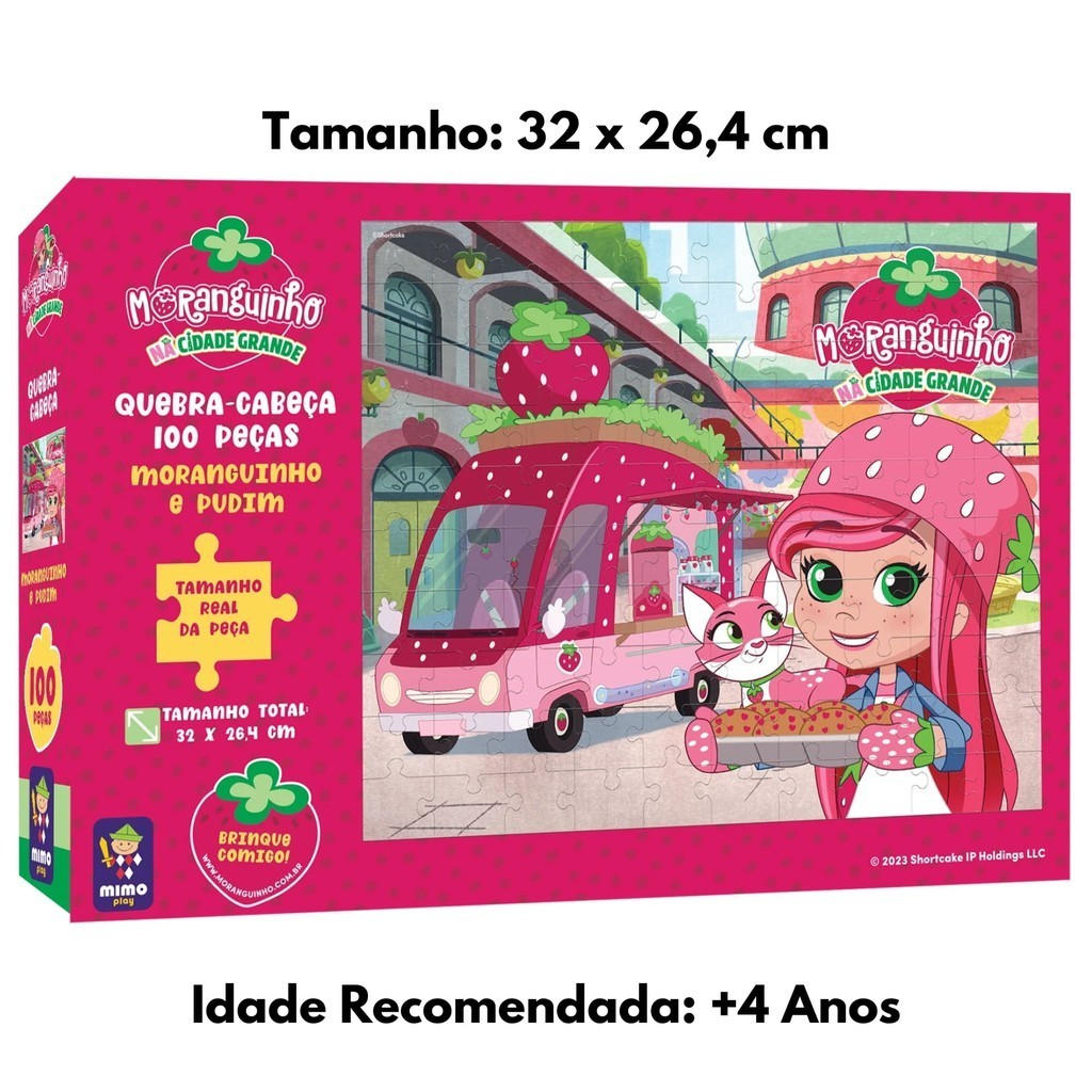 Brinquedo Infantil Quebra Cabeça Moranguinho e seu Gatinho Pudim na Cidade Grande 100 Peças Mimo Toys 4011