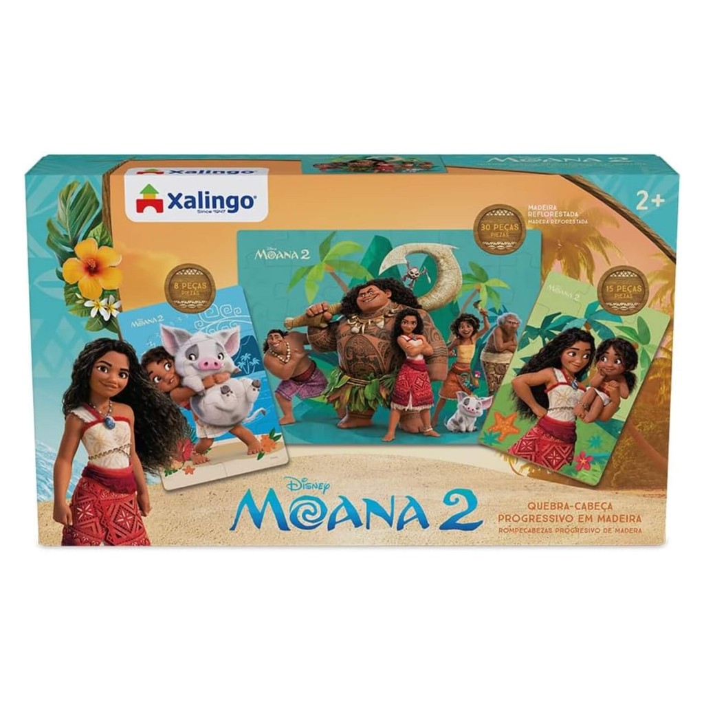 Brinquedo Infantil Quebra Cabeça Progressivo Moana 2 Xalingo 16498 Jogo Educativo Puzzle Criança
