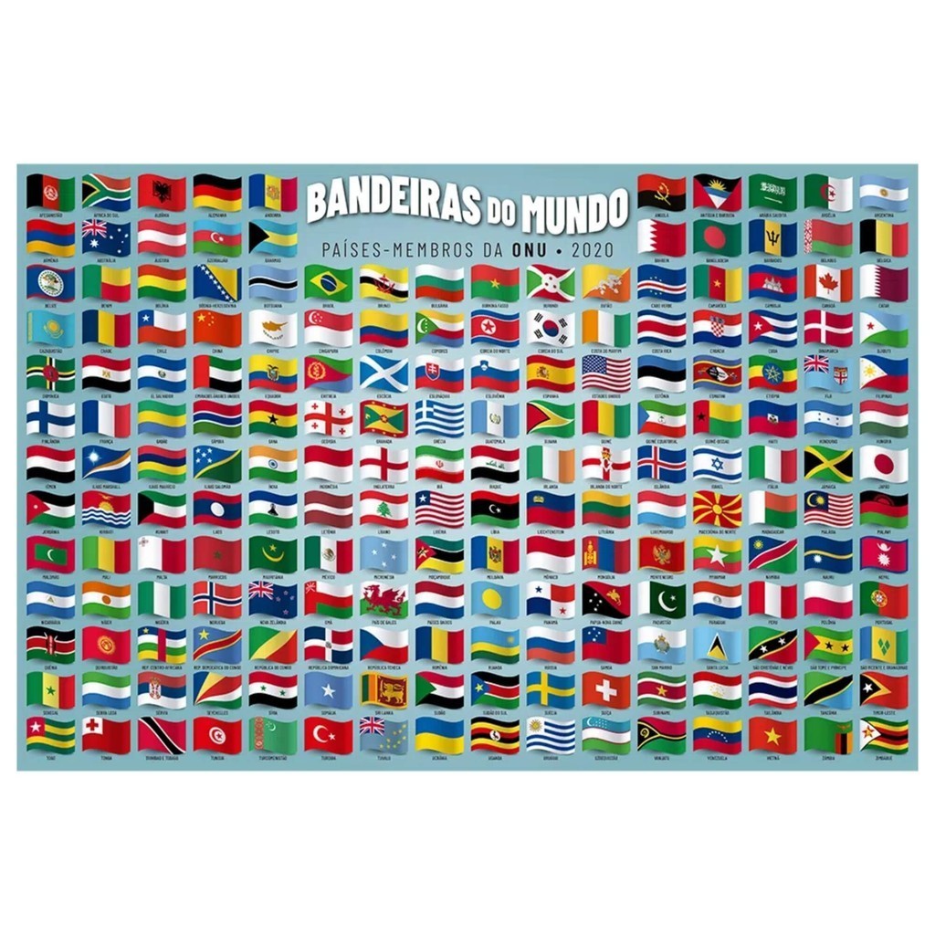 Bandeiras do Mundo é um quebra-cabeça para aprender e se divertir! Possui 200 peças que se encaixam e formam os países membros da ONU - 2020. É um puzzle didático, que além de superdivertido, introduz esse conceito às crianças. Mais que um passatempo divertido, os quebra-cabeças desenvolvem o raciocínio, relaxam e se transformam num autêntico hobby. Quantidade de peças: 200 Tamanho aproximado do puzzle montado: 30,5 x 45,3 cm Idade: a partir de 7 anos Especificações Técnicas Tamanho Aproximado da Imagem: 45,3 x 30,5 Dimensões Aproximadas da embalagem: 27,0 x 16,0 x 6,8 cm Peso: 250g Participantes: 1 ou mais Outras Informações: Não recomendável para crianças menores de 3 anos por conter partes pequenas que podem ser engolidas ou aspiradas. Características: - Marca: Grow - Modelo: 04034 *Imagens Meramente Ilustrativas* Conteúdo da Embalagem: - 1 quebra cabeça puzzle com 200 peças quebra cabeça - quebra cabeças - quebra cabeça bandeiras do mundo - quebra cabeça 200 peças - quebra cabeça bandeiras - quebra cabeça 200 peças bandeiras - puzzle 200 peças - puzzle bandeiras - puzzle de 200 peças