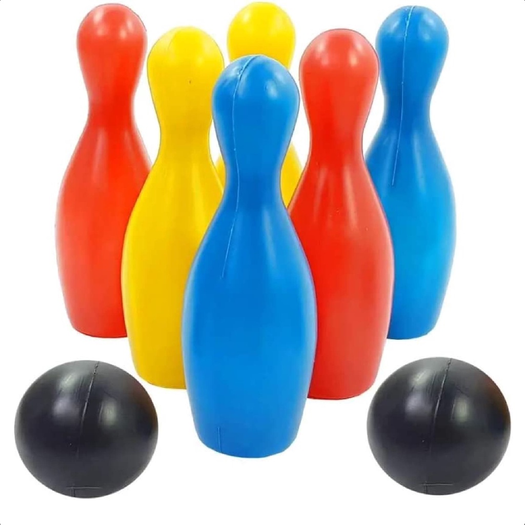 Brinquedo Jogo De Boliche Bolichão 6 Pinos 43cm 2 Bolas Plástico +3 Anos Multicolor Cores Sortidas Líder - 2259