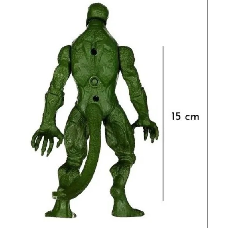 Boneco de 15 cm articulado Lagarto . Material: Plástico. Idade: Não recomendado para menores de 3 anos de idade. Incrível e detalhado boneco do Lagarto com 16 cm de altura e 4 pontos de articulação. Esse boneco possui todos os detalhes do personagem da Marvel e garante proporcionar uma brincadeira repleta de diversão e aventura para as crianças! O brinquedo possui um sensor de luz na altura de seu peito, o que deixa muito mais incrível