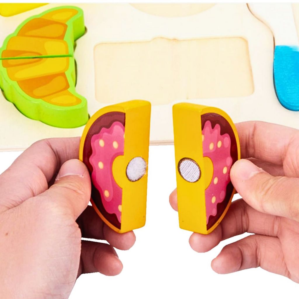 Brinquedo MDF Corta Frutas Legumes Doces Crec Brinquedos de Cozinha Corta Crec Velcro Frutas Madeira