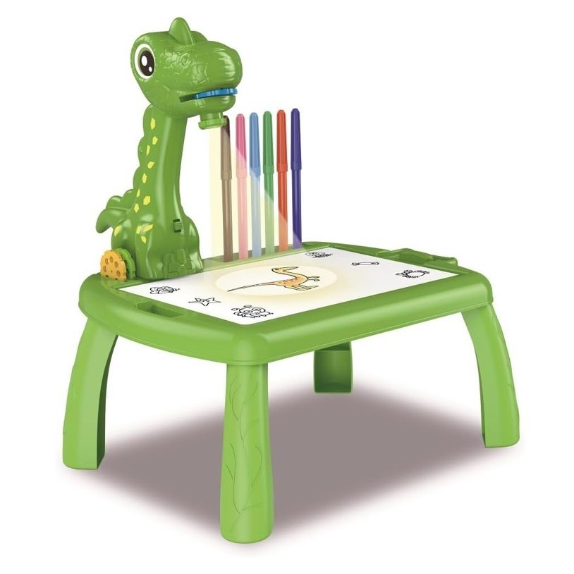Brinquedo Mesinha Projetora Dinossauro Zoop Toys Com esta mesinha, será mais fácil para sua criança aprender a desenhar Brinquedo super completo, acompanha 12 canetinhas de diferentes cores, apagador e papel Nosso projetor, tem qualidade garantida pelo INMETRO sendo assim podemos passar total confiança e credibilidade para nossos clientes. O projetor de desenho acompanha: - 01 Projetor infantil; - 01 Mesa para desenhar - 12 Canetas de pintura - 01 Bloquinho de papel - 03 Projetores de imagem com 24 desenhos diferentes Aprimora os seguintes sentidos: - Percepção Visual; - Domínio artístico; - Percepção Tátil; - Reconhecimento de Cor; O brinquedo funciona com 2 pilhas ''AA'', NÃO INCLUSAS Tamanho do projetor lousa mágica: - Comprimento: 29cm; - Largura: 21cm; - Altura total: 32cm; Dimensões da embalagem (AxLxC): 24 x 30 x 5 cm Peso: 400g Garantia do vendedor: 7 dias Garantia do fabricante: 3 meses Produto original, novo, lacrado e acompanhado de Nota Fiscal.