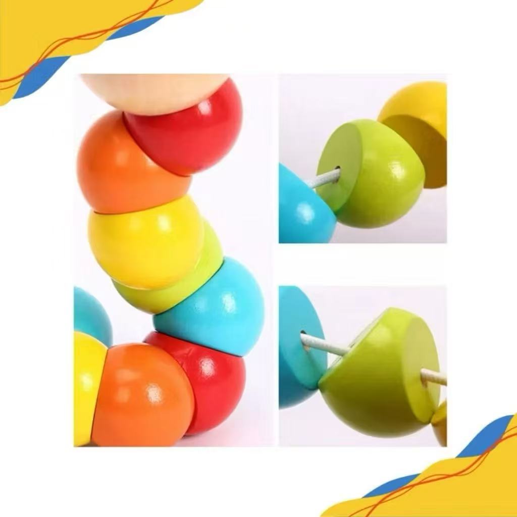 Brinquedo Minhoca Colorida Montessori Madeira Lagarta Colorida Educativa
