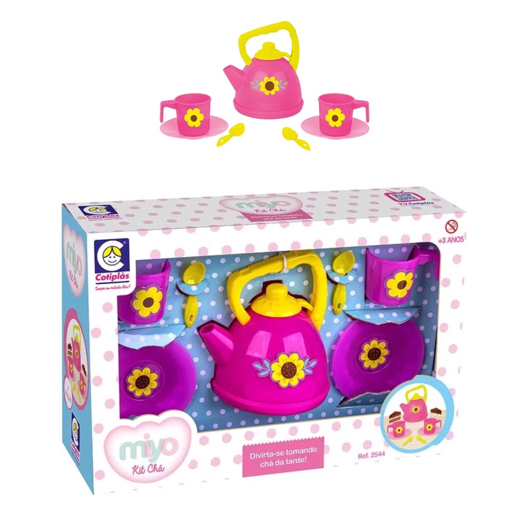 A hora do chá ficou mais atrativo com o Conjunto de Chá da Miyo. São 7 peças em plástico para deixar o chá da tarde mais elegante. É composto de pires, colher, bule e xicaras. Caracteristicas: - Marca: Cotiplás - Modelo: 2544 *Imagens meramente ilustrativas Especificações Técnicas: - Idade Recomendada: Acima de 3 anos. - Material: Pástico - Cores: Rosa e amarelo - Altura: 23 cm - Inmetro: CE-BRI/IQB 0228 IQB-OCP 006 Conteúdo da embalagem: - 1x Bule - 2x Xícaras - 2x Pires - 2x Colheres