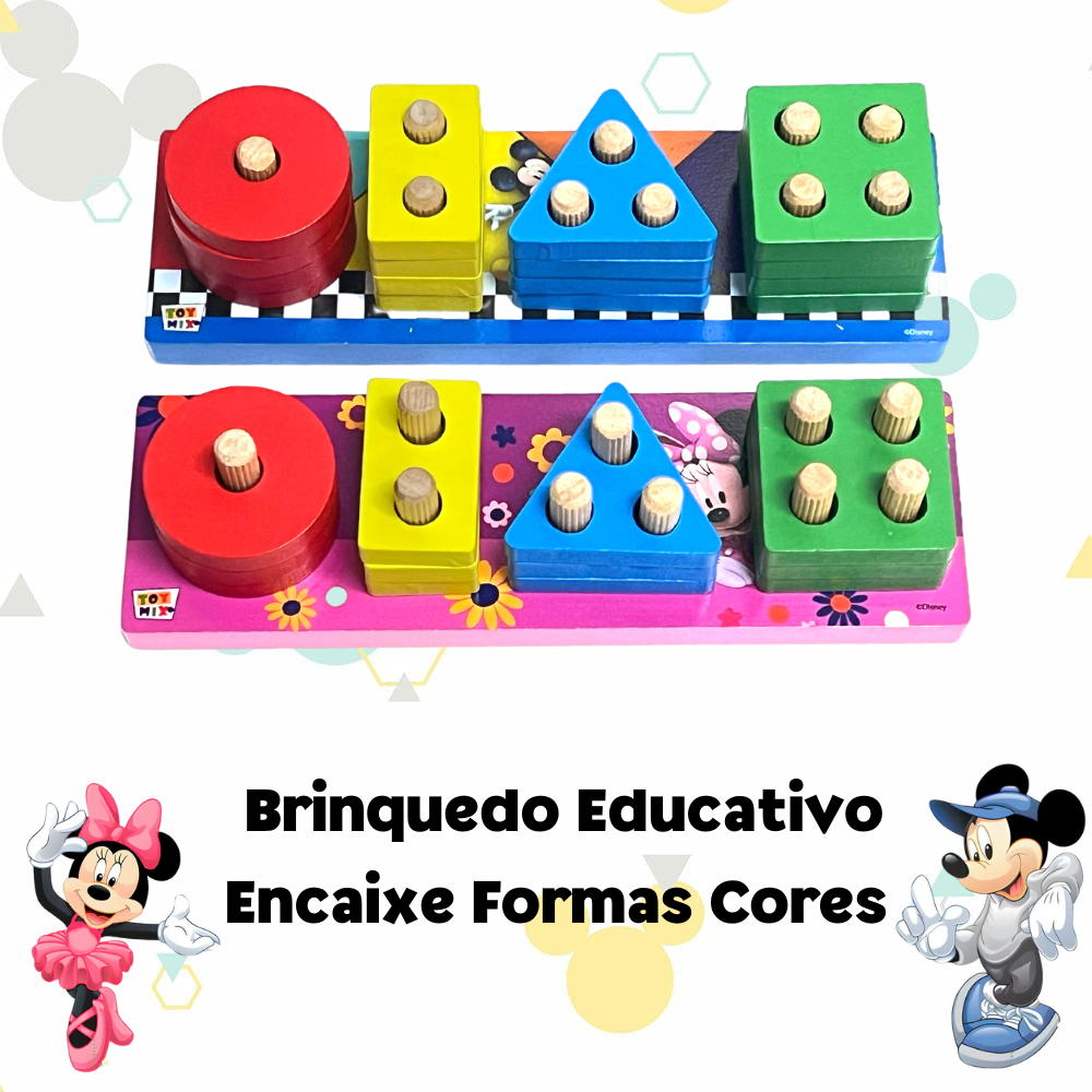 Brinquedo Montar Encaixe 4 Cores Pedagógico Mickey Minnie Infantil Passa Tempo Habilidades