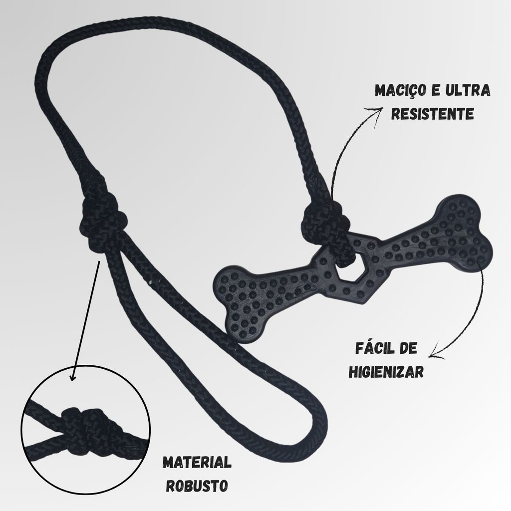 Brinquedo Mordedor Osso Sextavado Preto Corda Cachorro Pet Cabo de Guerra Mastigação Saudável