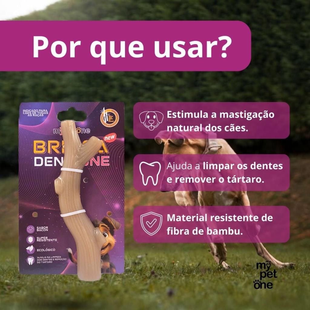 Brinquedo Osso Bamboo Gravetin Brinca Dent One Sabor Bacon Para Cães